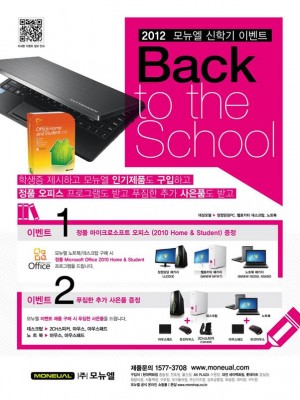 모뉴엘은 오는 31일까지 한 달간 데스크톱과 노트북을 구입하는 초중고, 대학생들에게 마이크로소프트(MS) 정품 오피스(2010 Home & Student) 프로그램과 함께 스피커와 마우스 등 추가 사은품까지 증정할 계획이다.