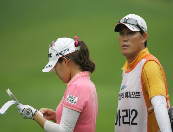 축구코치 고정운이 10일 충북 진천에 위치한 히든밸리 GC(파72·6518야드)에서 열린 히든밸리 여자오픈(총상금 5억원) 1라운드에서 자신의 딸 고아라의 캐디로 나서 눈길을 끌었다.