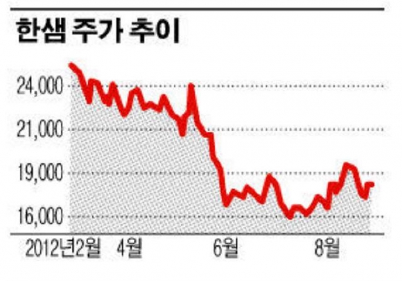 앞서 한샘은 지난 3월 2일 2만5700원을 기록하며 단기 고점을 찍었다. 그러나 회사측이 이후 2013년 본격적인 진출을 앞두고 있는 스웨덴의 가구업체 이케아를 의식한 투자 확대에 초점을 맞추면서 오히려 주가는 내리막을 걸었다.