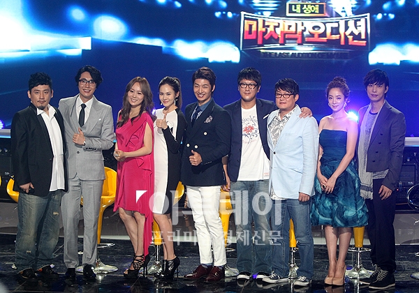 KBS 2TV ‘내 생애 마지막 오디션’ 기자간담회가 열린 30일 오후 서울 여의도 KBS별관에서 출연자들이 포토타임을 갖고 있다. 사진왼쪽부터 현진영,조성모,이수영,아이비,손호영,박근태,김현철,박은영 아나운서,김원준.