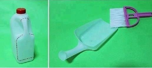 이번에 공개된 ‘우유통의 새로운 발견’ 사진에는 평범한 플라스틱 우유통의 손잡이와 이어진 몸통 부분을 사각형 모양으로 잘라내 쓰레받이로 만들어 감탄을 자아낸다.