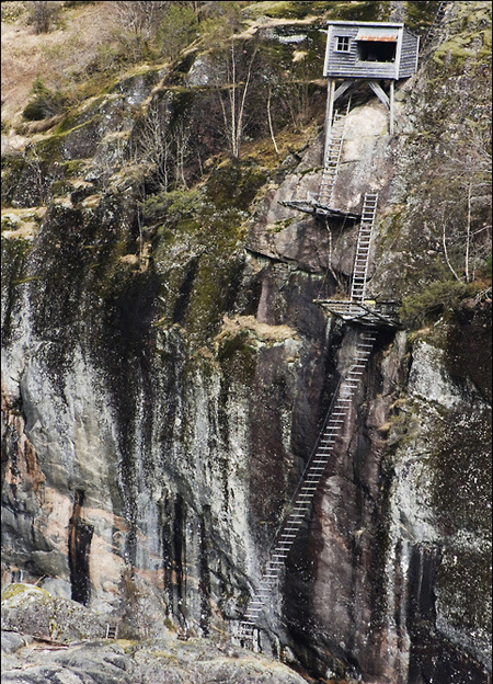 사진 속 집은 안전장치 하나 없이 3단으로 이뤄진 사다리를 통해 올라가야 해 어지간한 담력으로는 드나들기 힘들어 보인다.