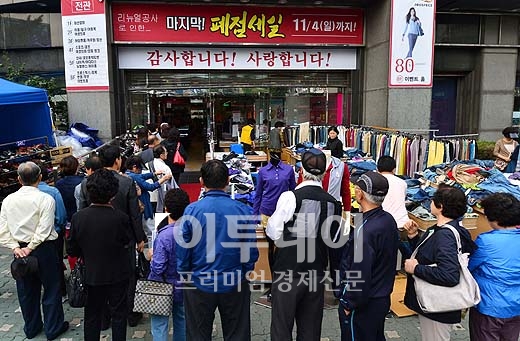 경기 침체의 어두운 그림자가 사회 전반으로 번지고 있는 가운데 5일 오전 서울 신촌의 상징이었던 그랜드 백화점 폐점 고별세일에 이른 아침부터 고객들이 몰려들고 있다.