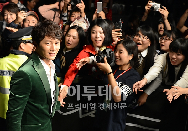 영화배우 지성이 5일 오후 부산 해운대 BIFF 빌리지에서 열린 제17회 APAN 스타로드 블루카펫 행사에서 팬들의 환영을 받으며 입장하고 있다.