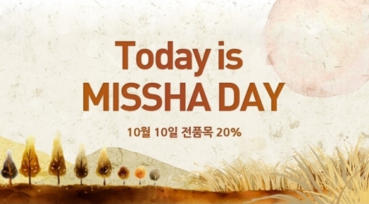 미샤는 이날 전국 매장 및 뷰티넷 사이트(shop.beautynet.co.kr)를 통해 구매액, 제품수에 상관없이 20% 할인을 적용한다고 밝혔다.