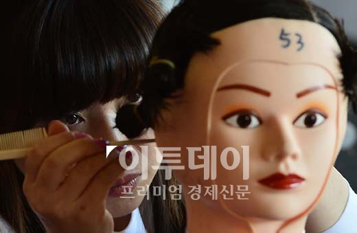 16일 경기 일산 호수공원 꽃전시관에서 '제1회 고양시장배 미용예술경연대회'에서 선수들이 미용기술을 선보이고 있다.