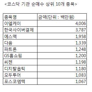 코스닥 기관 순매수 상위 10개 종목
