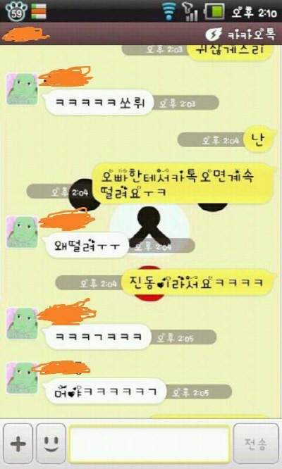 이는 스마트폰 사용자의 카카오톡 화면을 캡처한 것으로 한 여성이 지인에게 “오빠한테 카톡 오면 계속 떨려요”라는 메시지를 보내는 것으로 시작된다.