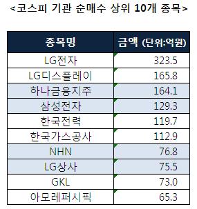 [코스피 기관 순매수 상위 10개 종목]
