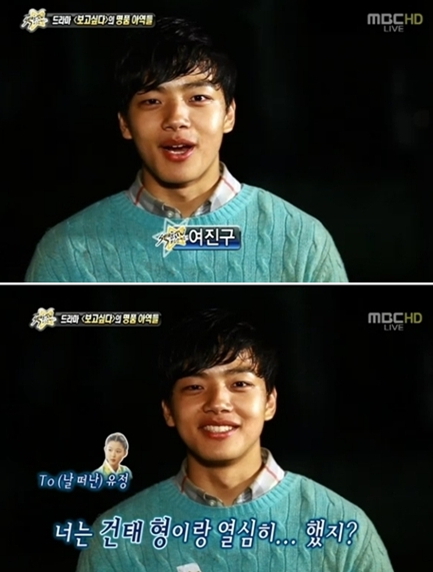 이날 방송에서 여진구는 "드라마 출연에 소현이의 출연이 50% 정도 연관돼 있다. MBC 드라마 '해를 품은 달' 촬영 당시 내가 좋아하는 김유정 때문에 소현이를 덜 챙겨준 것이 마음에 걸렸다. 이번 드라마에서는 챙겨주고 싶다"고 설명했다.