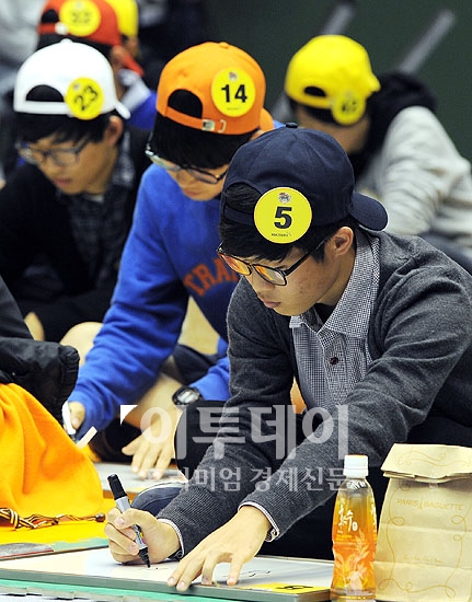 KGC한국인삼공사가 28일 오후 서울 마포구 홍익대학교 체육관에서 '정관장 아이패스 퀴즈올림피아드' 결선대회를 개최한 가운데 대회에 참가한 학생들이 정답판에 답을 적고 있다.