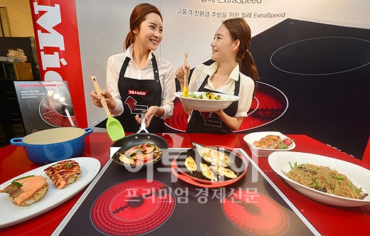 독일가전업체 밀레가 29일 오전 서울 중구 소공동 롯데백화점에서 빠른 열전도율로 에너지 소비량이 적고 일산화탄소의 배출이 없는 엑스트라 스피드(Extra Speed) 하이라이트 전기레인지 4종 출시 행사를 하고 있다. 새롭게 출시한 엑스트라 스피드는 한층 업그레이드된 밀레만의 하이라이트 열선 기술로 가열 시간을 30% 단축한 것이 특징이다.