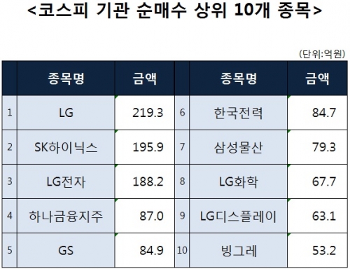 [코스피 기관 순매수 상위 10개 종목]