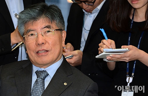 김중수 한국은행 총재가 31일 오전 서울 중구 한국은행 본관에서 열린 '경제동향간담회'에서 경제전문가들과 대화를 하고 있다.
