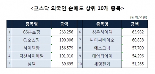 1일 코스닥 외국인 순매도 상위 10개 종목