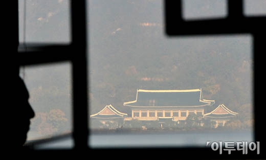 서울 전역에 짙은 안개가 낀 9일 중구 명동의 한 고층건물에서 바라본 청와대가 묘한 긴장감이 흐르는 듯 하다.