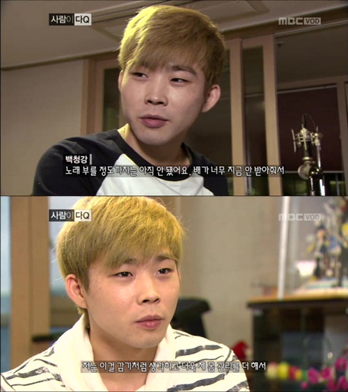 방송에서 백청강은 "아직 노래 부를 정도까지는 안됐다. 배가 너무 지금 안 받아준다. 노래 하려면 힘을 써야 하는데 힘이 안간다"고 털어놨다.