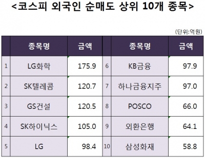 [코스피 외국인 순매도 상위 10개 종목]