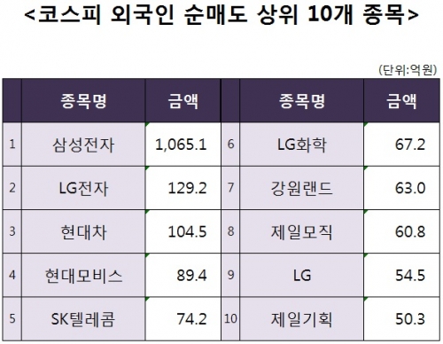 [코스피 외국인 순매도 상위 10개 종목]