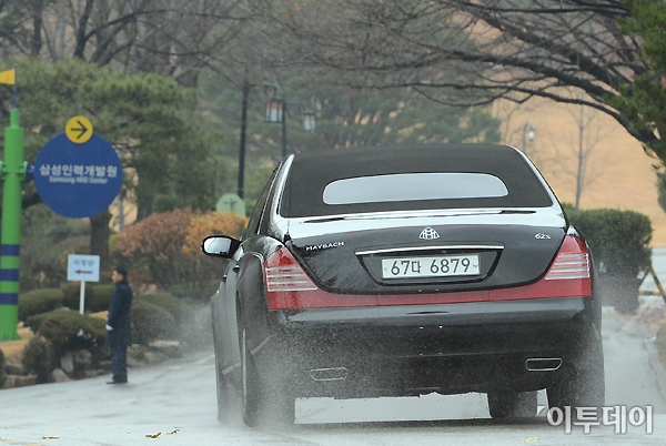 삼성그룹의 창업주 호암 이병철 회장의 25주기 추모식이 19일 용인 선영에서 열리는 가운데 삼성그룹 관계자들의 차량이 정문으로 들어가고 있다.