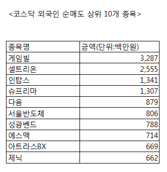 [코스닥 외국인 순매도 상위 10개 종목]