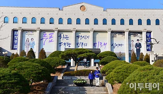 제18대 대통령 선거 공식 선거운동 시작을 하루 앞둔 26일 오전 경기도 과천시 중앙선거관리위원회 건물외벽에 투표를 독려하는 대형현수막이 붙여져 있다.