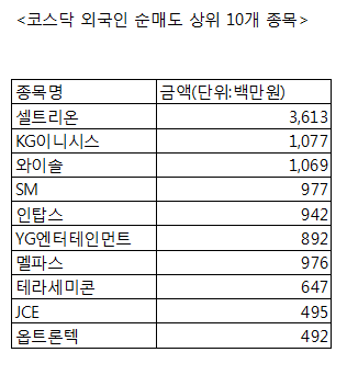 [코스닥 외국인 순매도 상위 10개 종목]