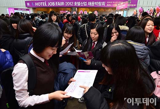 ‘2012 호텔산업채용박람회’가 27일 서울 강남구 코엑스에서 열리고 있다. 이번 채용박람회는 외국인 관광객 1000만 시대를 맞이해 수도권 지역 관광호텔 산업에 대한 투자가 증가하고 있는 가운데 청년 구직자들에게 취업의 기회를 제공하고 호텔업계에 유능한 전문 인력을 유입하기 위해 열렸다.