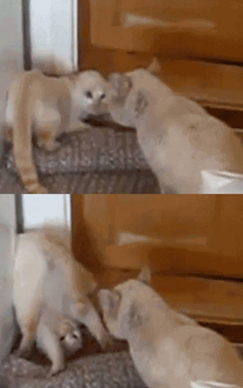 영상 속에는 고양이 두 마리가 서로 견제하는 모습이 담겨있다. 그러다 고양이 한 마리가 다른 고양이에게 경계의 눈빛을 보내다 재빨리 몸을 뒤집어 분노를 표출하는 모습을 보여 웃음을 자아냈다.