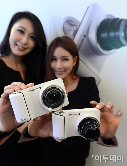 삼성전자가 29일 오전 강남구 서초사옥 딜라이트에서 ‘삼성 갤럭시 카메라 국내 런칭’ 행사를 개최해, 모델들이 신제품을 선보이고 있다. ‘삼성 갤럭시 카메라’는 삼성 스마트폰의 대명사 갤럭시 시리즈의 혁신적 DNA와 삼성 디지털 카메라의 광학 기술력을 결합한 신개념 기기다.