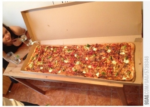 사진에는 직사각형 모양의 초대형 피자가 탁자에 놓여있고 한 여성이 놀란 표정으로 바라보고 있는 장면이 담겨 있다. 특히 이 피자는 헝가리 현지인들이 즐겨 먹는 것으로 긴 4인용 식탁에 딱 맞는 크기여서 네티즌의 놀라움을 자아내고 있다.
