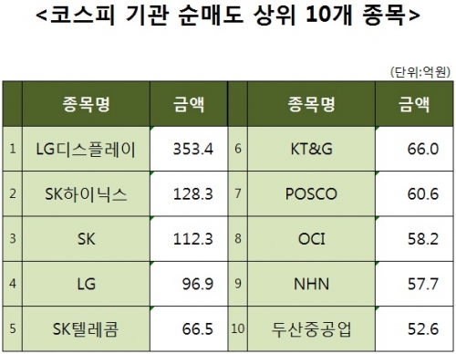 [코스피 기관 순매도 상위 10개 종목]