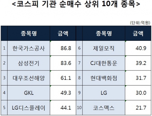 [코스피 기관 순매수 상위 10개 종목]