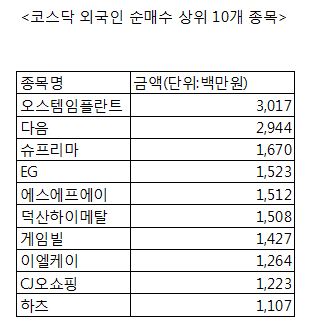 5일 코스닥 외국인 순매수 상위 10개 종목