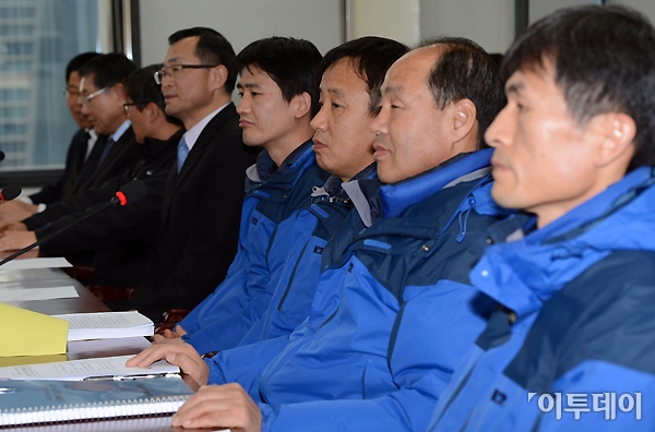 서울 지하철 1~4호선을 운영하는 서울메트로의 노조 ‘서울지하철노동조합’이 정년연장을 주장하며 내일 지하철 파업을 예고한 가운데 10일 오후 서울 마포구 도화동 중앙노동위원회에서 사측과 협상을 벌이고 있다. 사측과 노조측이 노민기 의장의 회의 진행 발언을 듣고 있다.