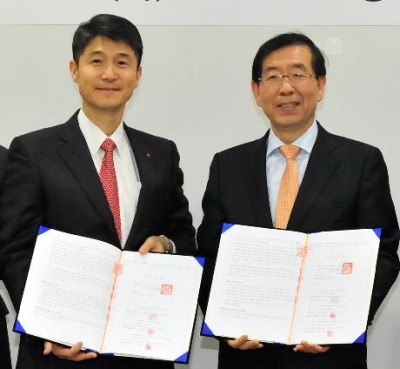박원순 서울시장과 조준호 LG대표이사 사장은 이날 오후 시청 6층 회의실에서 입주계약을 체결했다.