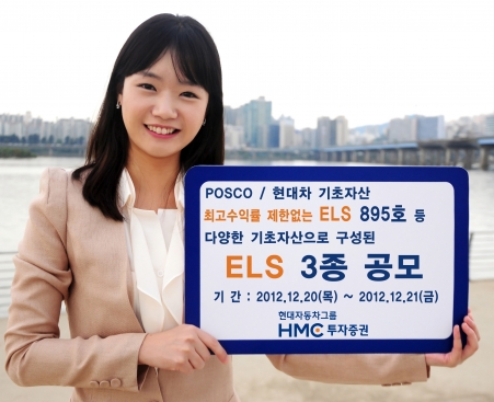 ‘HMC투자증권 ELS 895호’는 POSCO와 현대차를 기초자산으로 하는 1년 만기 원금95% 보장형 상품이다. 발행 1 년 후 두 기초자산 중 수익률이 더 낮은 종목의 종가가 최초기준가격의 100% 이상인 경우, 상승폭의 70%를 수익으로 제공한다. 이 상품의 최대수익은 제한이 없다. 1년 후 주가가 기준주가 미만으로 하락하더라도 최대 손실폭은 원금대비 -5%로 제한되어 있다.