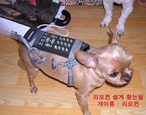 '리모컨' 이라는 강아지를 부르면 리모컨을 등에 메고 있는 강아지가 달려와 쉽게 찾을 수 있다는 것이다.