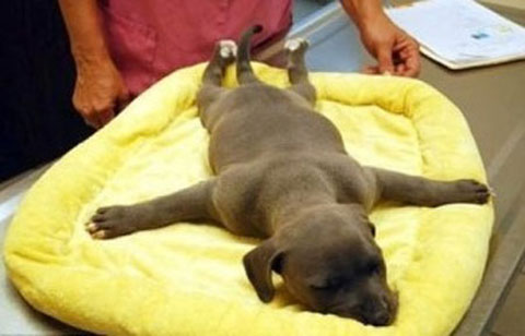사진은 지친 모습으로 쿠션 위에 쭉 엎드려 있는 강아지의 모습을 담은 사진이다. 기력을 잃은 채 뻗어있는 강아지의 모습이 마치 불타는 금요일 밤을 보낸 후 지쳐있는 모습과 같다.