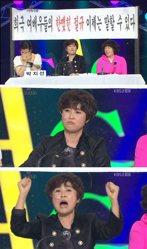 송은이는 지난 23일 KBS 2TV ‘개그콘서트’의 ‘희극 여배우들’ 코너에 출연해 “저는 독거노인이 아닙니다”며 자신의 대학 동문인 류승룡과 안재욱을 고발했다.