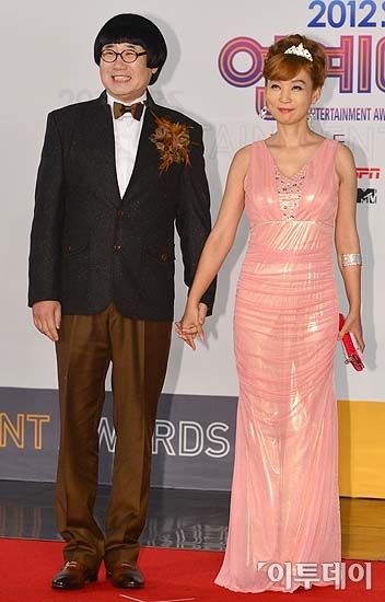 개그맨 최양락, 팽현숙 부부가 30일 오후 서울 상암동 SBS 프리즘타워에서 열린 '2012 SBS 연예대상' 시상식에 참석해 레드카펫을 밟고 있다.