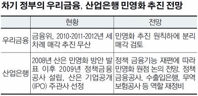 우선 우리금융 매각을 통한 민영화에 대해 전문가들은 차기 정부가 이를 적극 관여할 것으로 전망하고 있다.