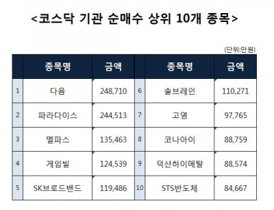 [코스닥 기관 순매수 상위 10개 종목]
