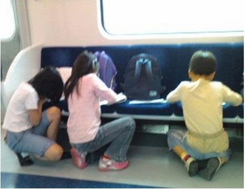 공개된 사진 속에는 초등학생들이 지하철 좌석을 책상 삼아 열심히 무언가를 필기하고 있는 모습이 담겨 있다. 게시자는 "밀린 숙제를 안 하면 꼴이 저렇게 된다"라는 설명을 덧붙여 웃음을 자아냈다.