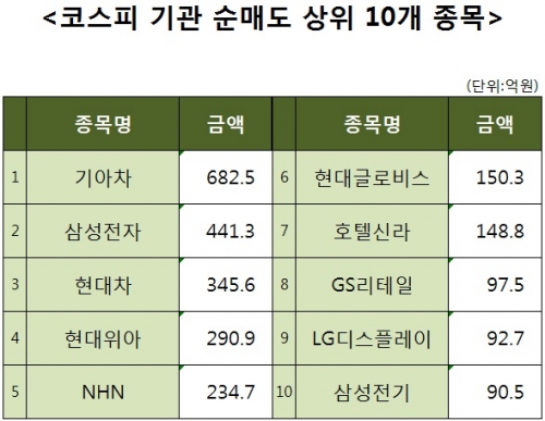 [코스피 기관 순매도 상위 10개 종목]