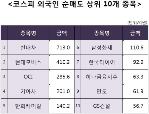 [코스피 외국인 순매도 상위 10개 종목]