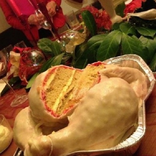 공개된 '생통닭 케이크'는 생닭의 배를 갈라 그 안의 내장을 제거한 후 빵과 크림으로 채워 놓은 충격적인 모습이다.