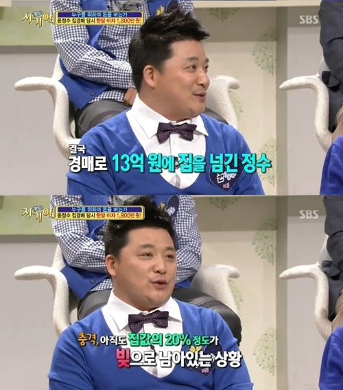 윤정수는 3일 방송된 SBS '자기야'에서 "보증을 잘못 섰고 대출금은 커지면서 집값은 떨어지니깐 어쩔수 없이 집을 팔 수 밖에 없었다"고 밝혔다.