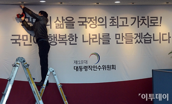 대통령직 인수위원 명단이 4일 발표될 예정인 가운데 삼청동 한국금융연수원에 마련된 인수위 사무실 준비가 한창이다.