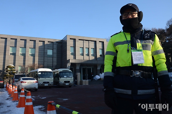 대통령직 인수위원 명단이 4일 발표될 예정인 가운데 인수위 사무실이 마련된 삼청동 한국금융연수원의 경비가 삼엄하다.